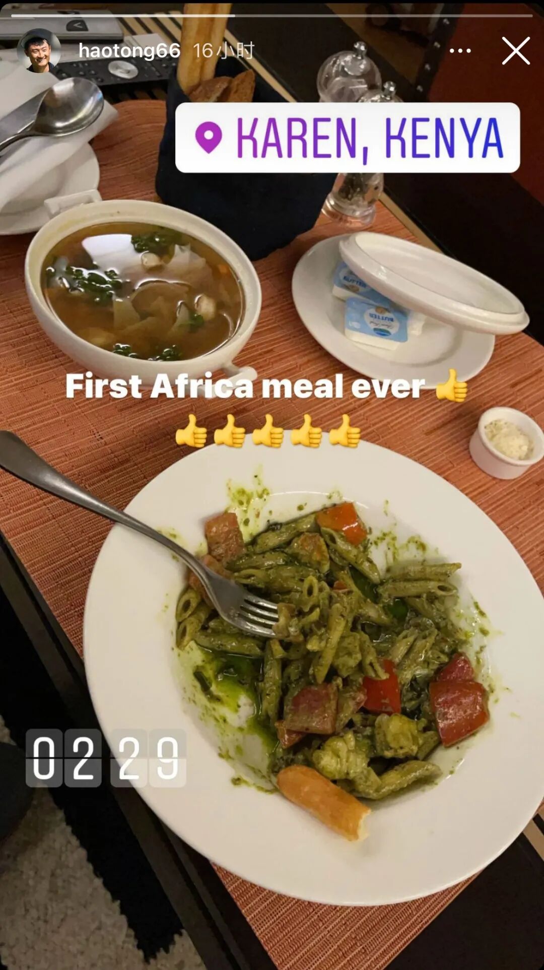 李昊桐的“非洲第一餐” (图/haotong66@Instagram)