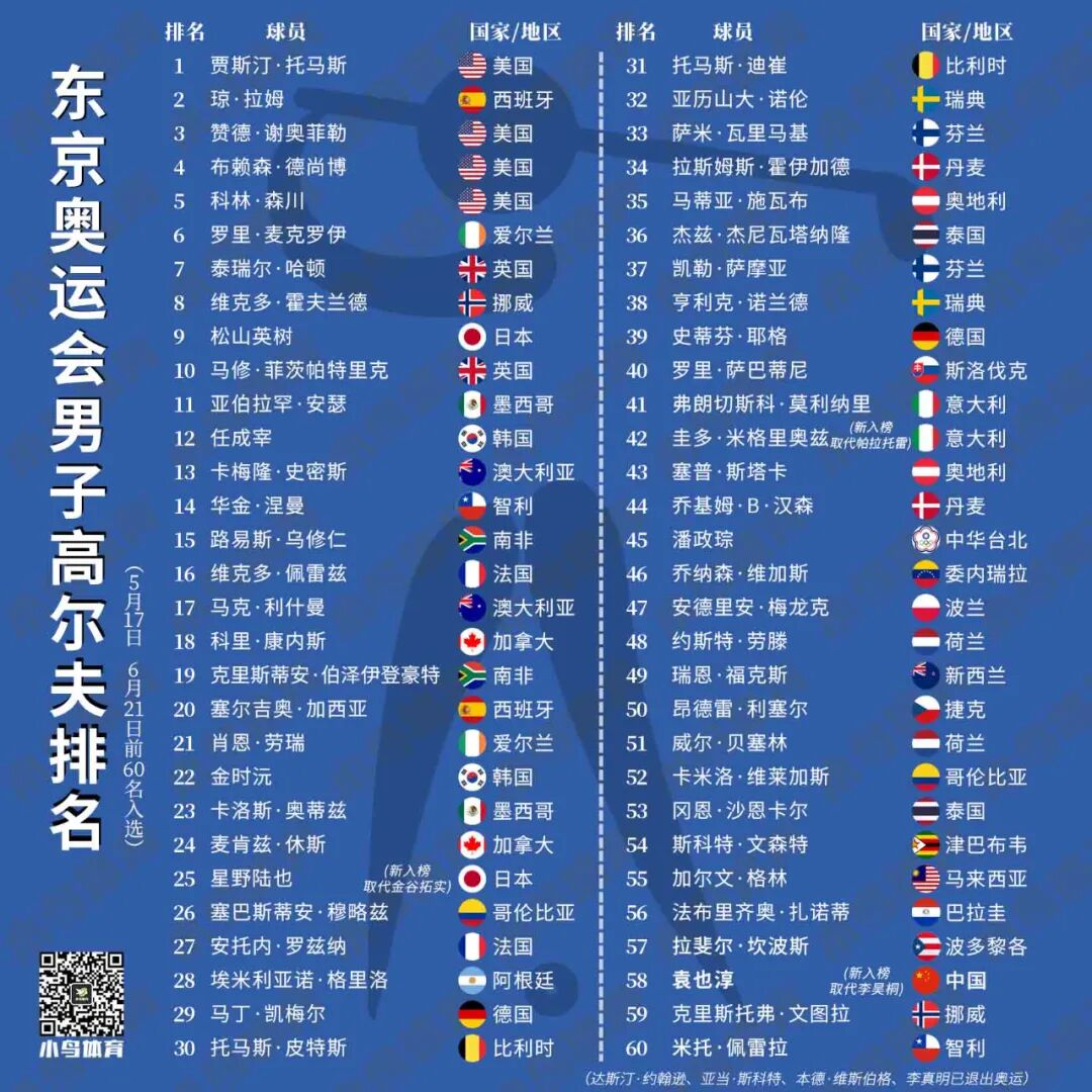 更为重要的是,在最新一期奥运会男子资格排行榜上,袁也淳的名字也第一次现身榜单!来到第58位,成为了名单中唯一一位中国大陆球员。如果他能在6月21日,即5周之后,守住前60名的排位,便将获得参加今年东京奥运会男子高尔夫赛事的资格。