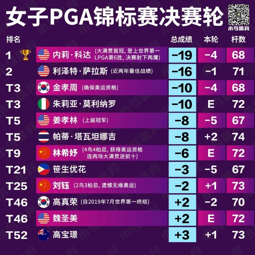 尽管刘钰接下来一周便再次反超,但她却放弃了冲刺奥运倒数第二站——梅杰尔锦标赛的赛程。也正是在这场比赛中,林希妤获得第15名,再次跃居中国第二,抢占先机,并最终通过今晨女子PGA锦标赛的一锤定音,在这场奥运席位之争的五年长跑中笑到最后。