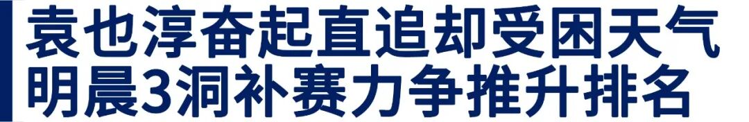 全场60人中有16人未能完赛,其中就包括了袁也淳。倒数第二组开球的他前九洞表现出色,在三杆洞和两个五杆洞抓下了3只小鸟,排名一度攀升至前11名行列。不过转场后,大连小将却多次打入沙坑和长草,再无小鸟进账,还在456码的12号洞三上两推,吞下全天唯一一记柏忌。