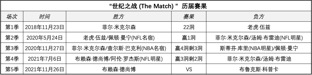 别忘了,北京时间本周六凌晨,德尚博与科普卡,就将进行一场面对面的比洞赛PK。没错,创立于2018年的名人对抗赛“世纪之战 (The Match) ”,将于本周的美国感恩节假期,上演第5季的大戏,对阵双方,正是当今职业高坛的头号冤家——布鲁克斯·科普卡VS布赖森·德尚博。