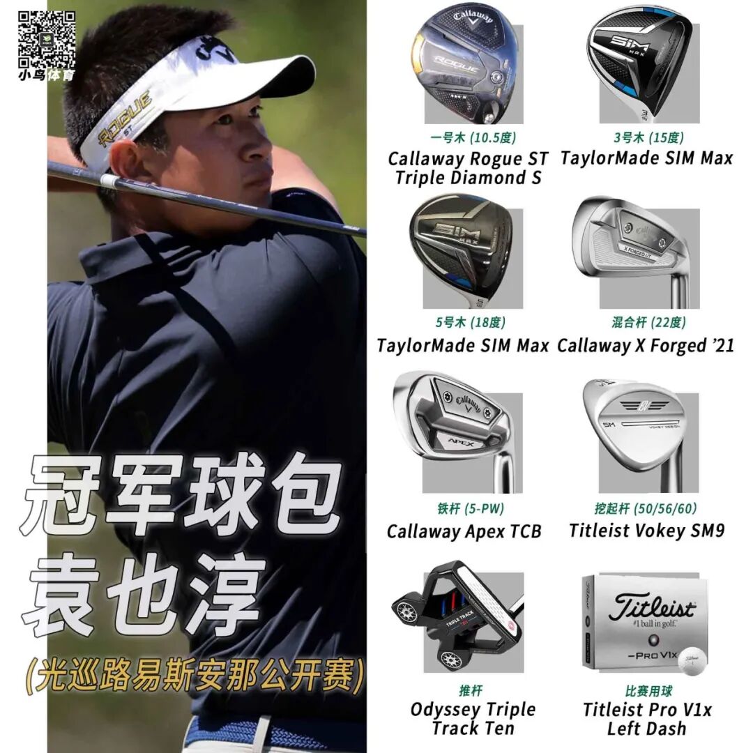 袁也淳曾在业余时代用过Honma一号木,转职业早期则是与TaylorMade品牌签约。2021年开始,他开始与Callaway合作,包括征战东京奥运会,使用的都是卡拉威一号木。不过在他目前的球包中,两根球道木还都是泰勒梅产品,挖起杆则是Titleist最新上市推出的SM9。 而在比赛用球方面,袁也淳也并未使用卡拉威产品,而是选用了相对独特的Titleist Pro V1x Left Dash。有意思的是,他同样是在本场比赛前,刚刚从Pro V1,换成了Pro V1x Left Dash。根据Titleist官方的说法,这款2019年秋天问世的产品,适合有一些特定性能需求的少数球手。对比Pro V1x,在全挥杆时的后旋低一些,飞行弹道也稍微低一点,击球手感比Pro V1x也更扎实一些。可惜这款产品,在国内同样尚未引进。