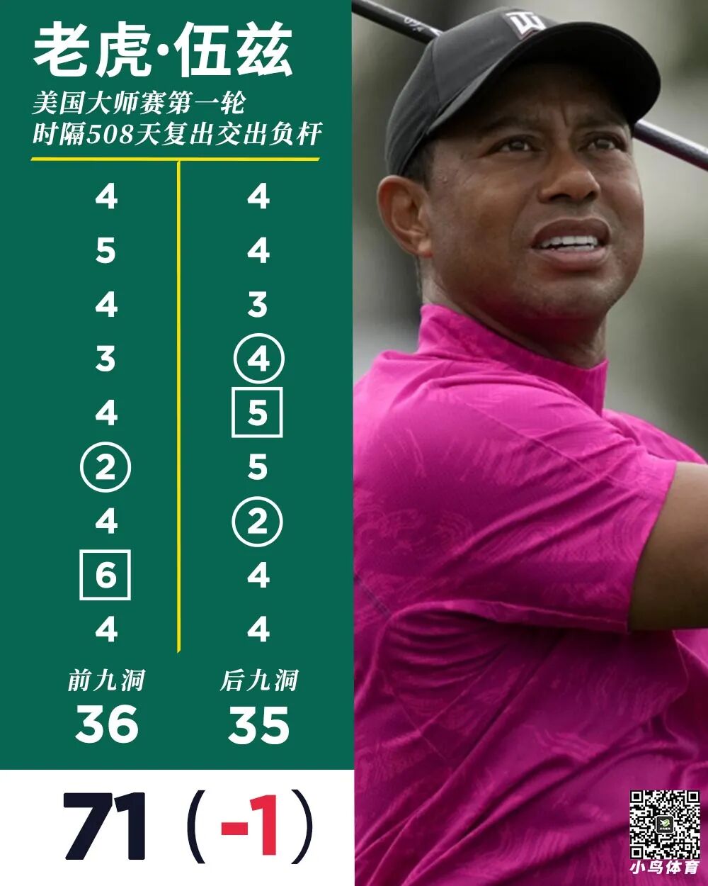 而在今天凌晨,2022年美国大师赛第一轮比赛中,老虎·伍兹更是用低于标准杆1杆的记分卡,对世人说——