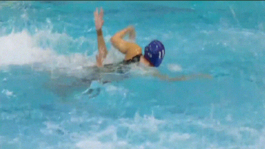 前50米,他游得吃力又笨拙,速度也很慢。