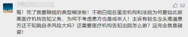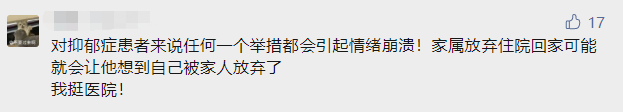 也有网友认为其家属才应该负大部分的责任,因为他们并没有重视患者的精神情况,任由患者不住院,患者回家后也没有对患者精心照顾和监视,才导致了悲剧的发生。也有一部分网友觉得医护人员很冤枉,明明已经尽职尽责做好了自己的工作,却还是被患者家属反咬一口。对于照顾精神病患者的医护人员而言,工作本身就处在巨大的压力当中,如果多几次这类事情的发生,医护人员在自己尽职尽责工作后还要受到患者家属的质疑,甚至要负起不应该负的责任,对医护人员而言无疑是“一盆冷水”,浇冷了医护人员的心。总而言之,作为医疗机构,应当提前告知患者做好治疗期间的授权委托手续,以优先告知患者本人为原则,患者本人的知情同意权大于一切;在不能或不宜向患者本人说明病情时,告知有授权的近亲属,即在授权委托书上签字的近亲属,并取得其明确同意,从而规避法律风险。医方在面对有精神问题的患者及其家属时,要谨慎诊断、详细告知医疗风险,并且和患者及其家属做好详细的沟通,以减少此类事故的发生。图文来源:医学之声