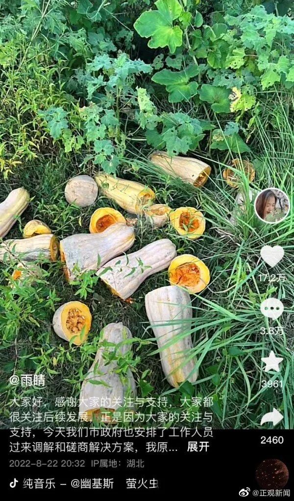 之后一个视频,余女士站在公安局门口,一边流泪,一边倾诉自己的无奈,“我每天早上天没亮就起来守瓜,我们这边婆婆爹爹不懂法,法律也制裁不了他们,(因为他们)年龄大。”视频发布后,政府派人过来调解,没想到在村委会协商期间,老人又组团将地里的南瓜砍烂。根据媒体报道,当地正在处理中......