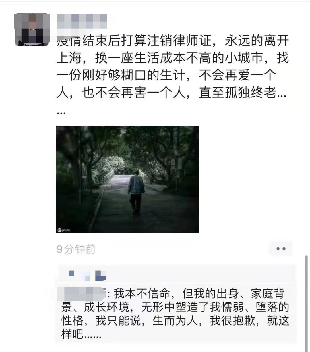 没有具体的心路历程剖析,一切都是猜测,但近期年轻律师遭遇困境的新闻,已经不是一起两起了: