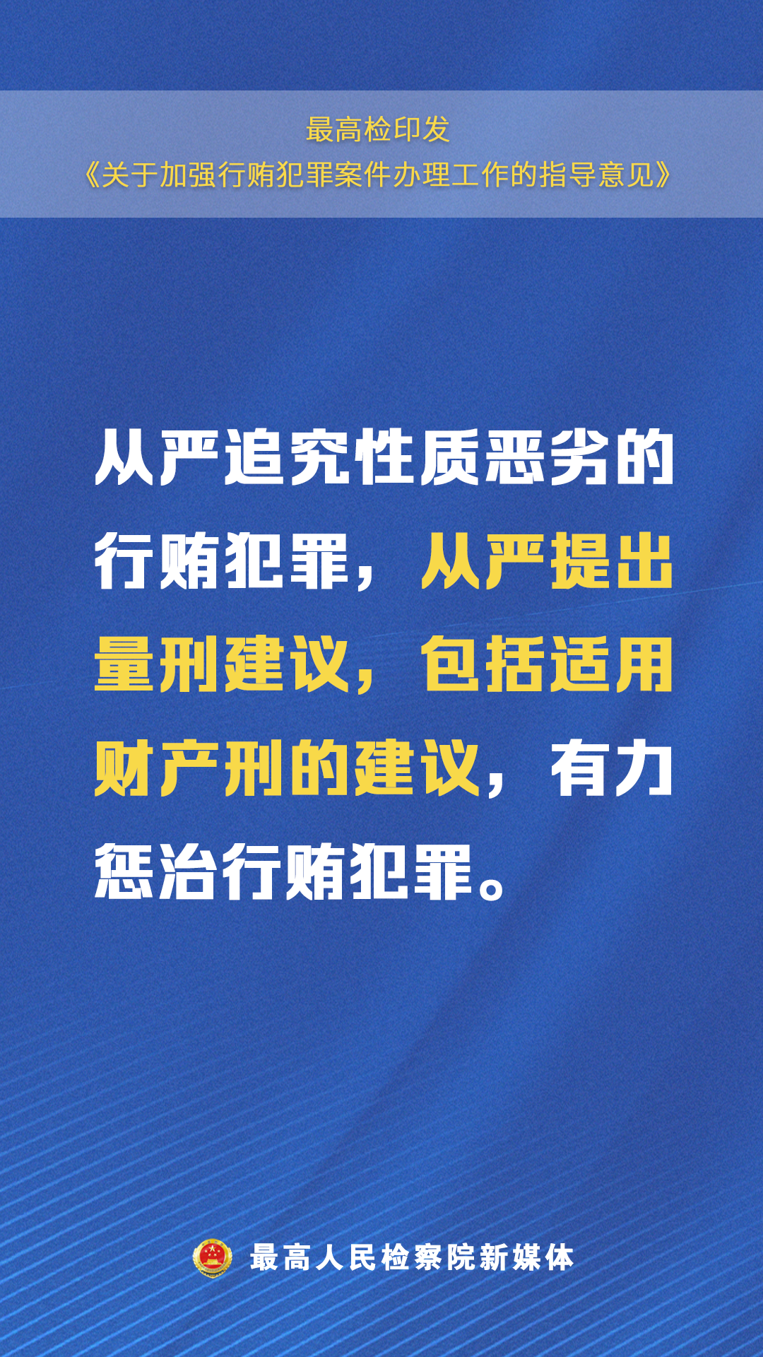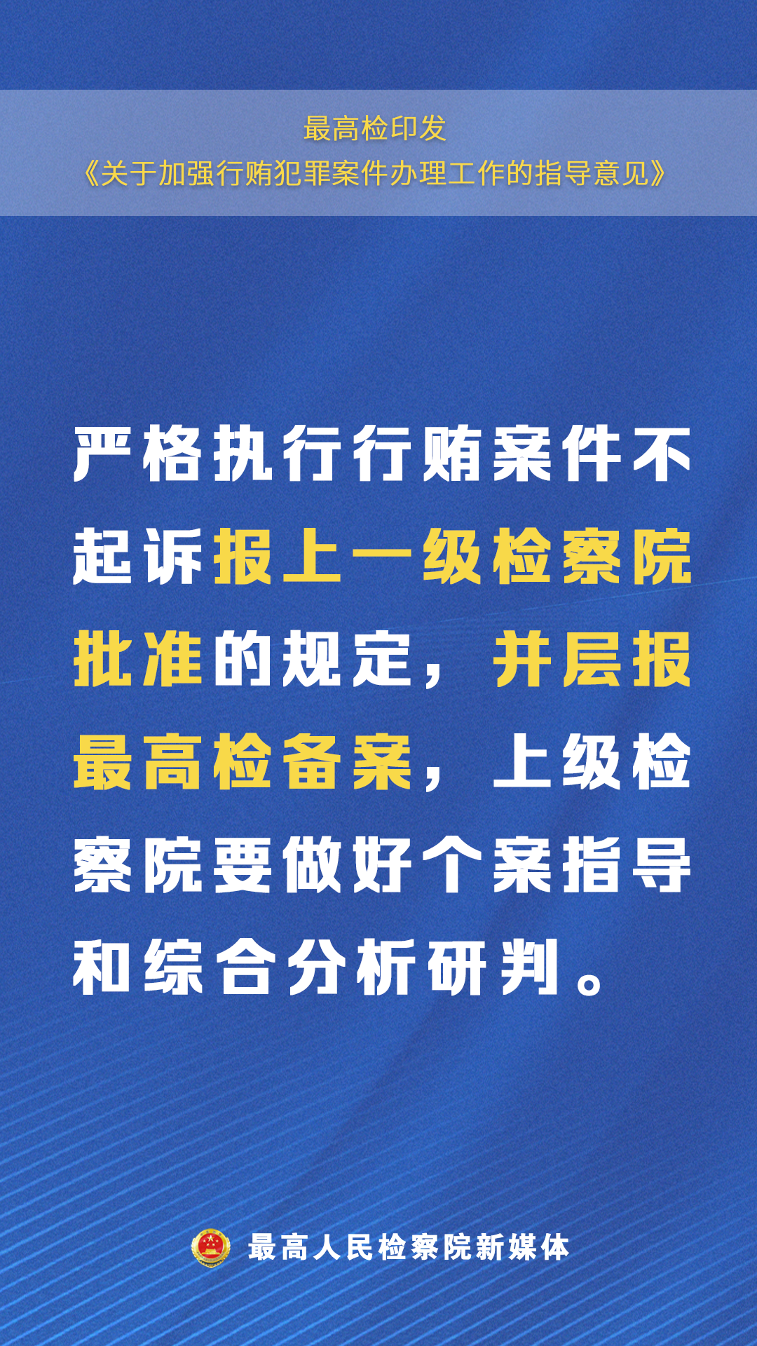 最高检印发《关于加强行贿犯罪案件办理工作的指导意见12月9日,是第19个“国际反腐败日”,最高人民检察院印发《关于加强行贿犯罪案件办理工作的指导意见》(下称《意见》),强调以“遏源”“断流”的坚定决心和务实举措,依法精准有力惩治行贿犯罪。行贿犯罪是受贿犯罪的重要诱因,“围猎”腐蚀之风不刹,腐败增量难以有效遏制。坚持受贿行贿一起查,是党中央作出的重要决策部署。党的二十大进一步强调“以零容忍态度反腐惩恶,更加有力遏制增量,更加有效清除存量”“坚持受贿行贿一起查”。最高检第三检察厅负责人介绍,近年来,检察机关加强与监察机关、审判机关互相配合、互相制约,加大惩治行贿犯罪力度,办案质量不断提高,落实坚持受贿行贿一起查决策部署的成效正在彰显。最高检印发《意见》旨在进一步贯彻落实党中央相关部署要求,结合办理行贿犯罪案件的新情况新问题,为各级检察机关立足职能从严惩治行贿、提升办案质效提供规范指引,助力推进受贿行贿一起查,实现腐败问题的标本兼治。《意见》强调,要准确领会党中央全面从严治党的精神,坚决落实反腐败斗争部署要求。要提高政治站位,自觉担当履职,高度重视、积极履行受贿行贿一起查的政治责任、法治责任和检察责任,以“遏源”“断流”的坚定决心和务实举措,为坚决打赢反腐败斗争攻坚战持久战作出检察贡献。要落实工作要求,把握办案原则,做到惩治与预防相统筹、打击犯罪与促进经济发展相结合,努力实现政治效果、法律效果、社会效果有机统一。《意见》强调,要坚持“一起查”的主基调,依法精准有力惩治行贿犯罪。要依法准确认定行贿犯罪,准确区分个人行贿与单位行贿。对以单位名义实施行贿、获得的不正当利益归个人所有的,应当认定为个人行贿。行贿人谋取不正当利益的相关行为单独构成犯罪的,应当依法与行贿犯罪数罪并罚。要从严追究性质恶劣的行贿犯罪,从严提出量刑建议,包括适用财产刑的建议,有力惩治行贿犯罪。要严格把握行贿犯罪的从宽处理,认真审查从宽情节证据,区分不同的情形、程度,做到罪责相适、宽严得当。行贿人认罪认罚,可以依法适用认罪认罚从宽制度的,根据案件具体情况依法决定是否从宽、如何从宽。对涉行贿犯罪的企业,符合适用涉案企业合规监管条件的,要按照规定认真做好相关工作,并通过第三方监督评估机制严格督促企业合规整改,不认真落实整改的要依法提起公诉。要加大力度追缴和纠正行贿所获不正当利益,通过认真审查、及时采取措施、探索建立机制、引入专业支持等,确保充分追缴和纠正。《意见》要求,要依法适用强制措施,区分不同性质查封、扣押、冻结涉案财产。要准确适用限制人身自由强制措施,对于符合相关条件的犯罪嫌疑人,依法采取取保候审、监视居住措施。严禁超范围查封、扣押、冻结涉案财产,对用于生产经营的账户、设备等,一般不予查封、扣押、冻结,切实保障企业合法生产经营活动的开展。《意见》要求,要加强业务指导,做实配合制约。要严格执行行贿案件不起诉报上一级检察院批准的规定,并层报最高检备案,上级检察院要做好个案指导和综合分析研判。要加强与监察机关、审判机关的沟通,落实好办案衔接规定,确保配合有力、制约有效,促进凝聚共识、协同发力。要加强对行贿犯罪案件的审判监督,综合运用多种方式,强化监督效果。《意见》指出,要强化诉源治理,推动标本兼治。要促进提升行贿犯罪治理效能,强化数字检察理念,分析研判相关行贿犯罪的规律特点和背后的管理问题,及时提出有针对性的检察建议或者专项报告。要加强预防行贿法治宣传,揭露行贿犯罪的社会危害性,释放坚决惩治行贿的强烈信号,彰显坚决追缴行贿所获不正当利益的鲜明态度,促进形成杜绝行贿、依法办事的社会风尚。