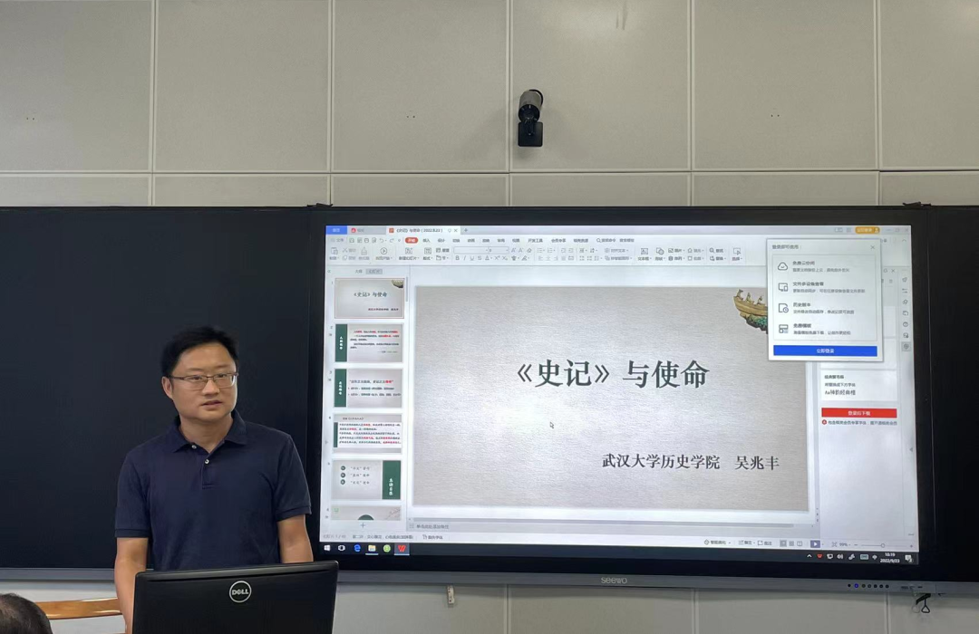 2022年上学年人文导引团队集体备课进展顺利,陆续完成新增两讲(《为什么读经典》与《学术写作入门》)及12部经典中的六讲的集体备课,这学期备课任务围绕剩下的六部经典展开,本学期第二次集体备课由此拉开序幕。9月23日上午10时,武汉大学通识教育《人文社科经典导引》课程组于文理学部第五教学楼308教室展开第三轮集体备课,此次备课由历史学院鲁家亮老师主持,历史学院吴兆丰老师、文学院肖圣中老师主讲,主讲经典为《史记》,关键词为“使命”,探讨史记与“使命”的关系。