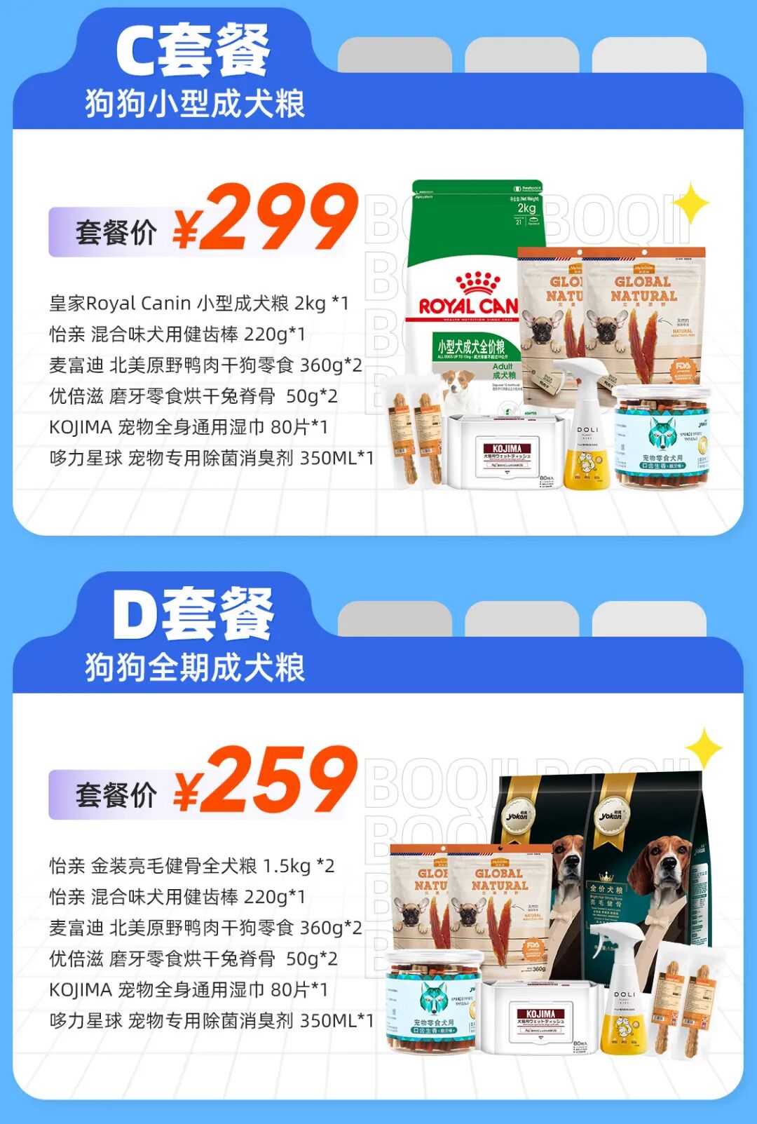 宠物必需品,六个板块