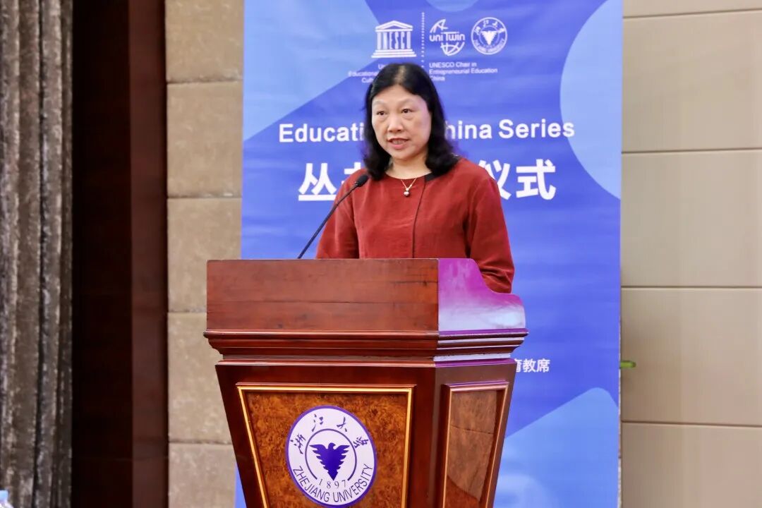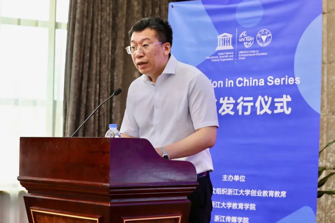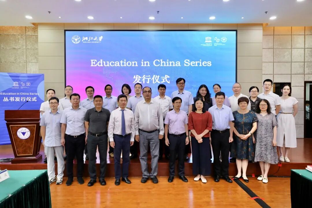 为传播新时代中国教育思想与实践,讲好中国教育故事,由徐小洲教授主编、中国高等教育出版社与德国斯普林格出版社(Springer)联合出版的Education in China Series(《中国教育系列丛书》)发行仪式于2022年7月10日在杭州举行。发布会由联合国教科文组织浙江大学创业教育教席、浙江大学教育学院、浙江传媒学院等单位联合主办。联合国教科文组织驻华代表处主任夏泽翰,浙江省社科联主席、省委宣传部副部长盛世豪,浙江大学副校长何莲珍,联合国教科文组织浙江大学教席主持人、浙江传媒学院校长徐小洲,高等教育出版社副总编龙杰等致辞。中央广播电视总台浙江总站站长张国飞、副站长胡作华,浙江省政协文化文史和学习委专职副主任周雷,新浪浙江总编余丹凤,凤凰卫视浙江公司总裁葛继宏及浙江大学、浙江传媒学院相关部门负责人出席会议。丛书发行仪式由浙江大学教育学院常务副院长阚阅教授主持。
