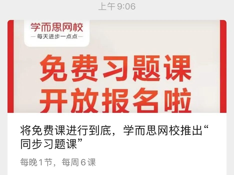 “免费的‘同步习题课’一方面帮助中小学生巩固课内知识点,解决学习中的重难点问题;另一方面减轻家长的辅导压力,帮助家长和学生节省课后时间。”学而思网校在官宣中写道。