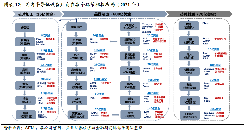 明年半导体行业预期增速为28%,设备、设计、材料维持高景气。2023年半导体行业整体业绩增速预测值为28%,相较2022年预测增速9.4%明显改善,其中设备与设计环节增速环比提升且在30%以上,材料预测业绩增速回落但仍达39%,而封测环节则有望实现景气反转,明年预期将实现18.5%的业绩增长。![]()