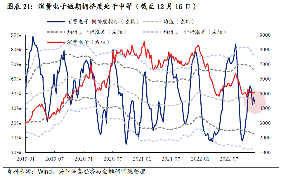 短期拥挤度处于中等水平,中期拥挤度中等偏低。从短期维度看,消费电子行业拥挤度目前已由高位降至中等水位,而中期拥挤度目前处于偏低水位。![]()