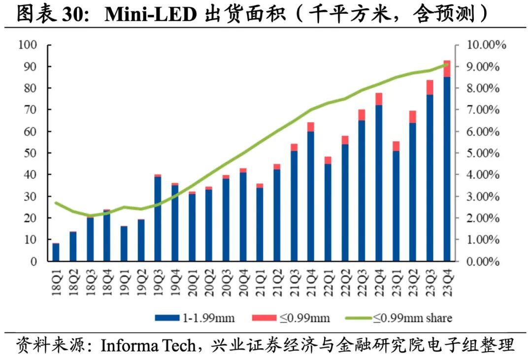 除消费电子外,我们跟踪了光学光电子和电子元器件两个产业链。光学光电子涵盖面板、光学元件、安防、Mini-LED、LED,共计5个细分行业;电子元器件涵盖被动元器件、PCB,共计2个细分行业。
