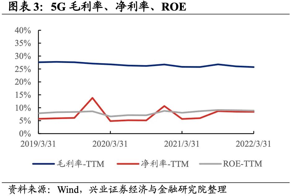 5G产业链整体业绩增速继续回升,但盈利能力小幅回落。从5G产业链整体来看,22Q1单季度归母净利润增速、营收增速分别是10.72%、15.76%,较21Q4单季度增速分别回升2.1pct、0.8pct。但盈利能力小幅回落,毛利率、净利率、ROE分别下降0.3pct、0.1pct、0.2pct。