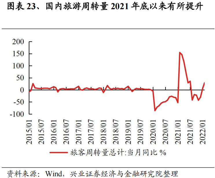 2022年3月以来,由于国内多地受到Omicron的影响,防疫政策再度趋严,对景区、酒店等也带来短期冲击。2022年清明节假期3天,全国国内旅游出游7541.9万人次,同比减少26.2%,按可比口径恢复至2019年同期的68.0%;实现国内旅游收入187.8亿元,同比减少30.9%,恢复至2019年同期的39.2%;而华住集团、锦江酒店的RevPAR相较2019年同期的恢复度也分别下滑至64.0%和69.0%。后续若国内疫情逐步控制,景区及酒店的消费数据也有望回暖。
