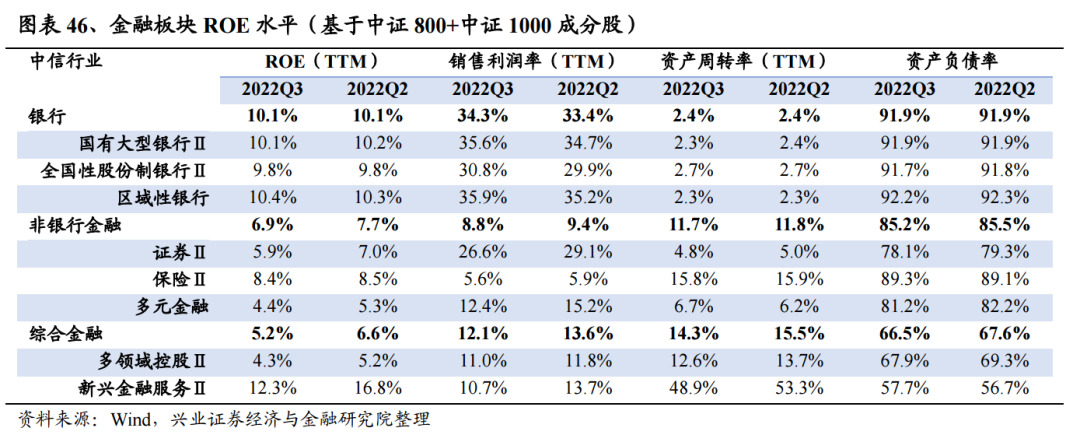 银行2022Q3净利润增速为8.0%,较2022Q2回升0.5个百分点。2022Q2受疫情扰动影响,信贷投放受阻,净利润增速放缓。2022Q3随着疫情扰动缓解,信贷规模扩张提速,银行业贷款规模同比增长11.5%,较2022Q2回升0.2个百分点。尽管净息差依旧承压,但信贷规模的扩张在一定程度上对冲了息差下行的压力,也支撑银行净利润增速小幅回暖。银行板块内部出现分化,依托活力较强的区域经济,区域性银行增速亮眼,2022Q3净利润增速达到14.9%,高于国有大行和全国性股份制银行。