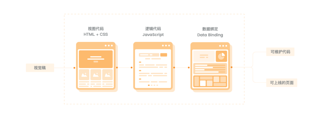 行文至此,我们已经具备了设计稿生成代码的整体方案,但离方案进行落地实践还有一段距离,我们需要有一个平台来承载我们的方案,当设计稿生成静态代码出现误差时,我们可以通过可视化编辑器进行二次调整,同时在获得静态代码的同时,我们也可以再加上组件化、字段绑定、生命周期等逻辑处理。