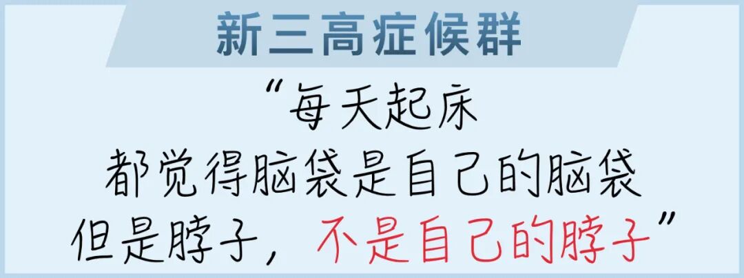 提前进入中年危机,连咱爸妈说的三高老人病,富贵病,也早早得上了。像我们这种新三高女性——“高强度(体力)、高压力(心理素质)、高消耗(脑力)”所造成的一系列三高症候群,你可能连自己都没意识到,身体的微炎症,亚健康,种种亮黄灯红灯的信号,都是你的#新三高症候群#给闹的年轻时,总觉得落枕不是个事儿,不就是落枕么?一年总有那么几次落枕我老公就更不用说了,三天两头说脖子不舒服,尤其是天一冷,一降温,下班回来就说自己的脖子又不好了