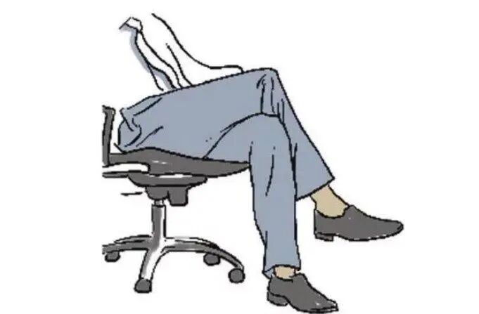 基本是在办公室里,你往桌子底下看,大部分人,都是翘着二郎腿在工作。而瘦子,能把二郎腿翘到膝盖,胖子则只能在足踝看起来二郎腿好像很好看,但是这个动作长期做,有一个致命的bug,就是会造成人骨盆前倾,脊柱侧弯,甚至会被翘成长短腿。在你跷二郎腿的时候,动作上是一条腿搭在另一条腿上,导致两侧髋骨不在一个水平线,长期这样,就会造成胸椎和腰椎的生物力学分布不均,最终导致骨盆前倾而骨盆前倾,会因为力量问题,导致腰肌劳损,造成腰部酸疼和腰间盘突出