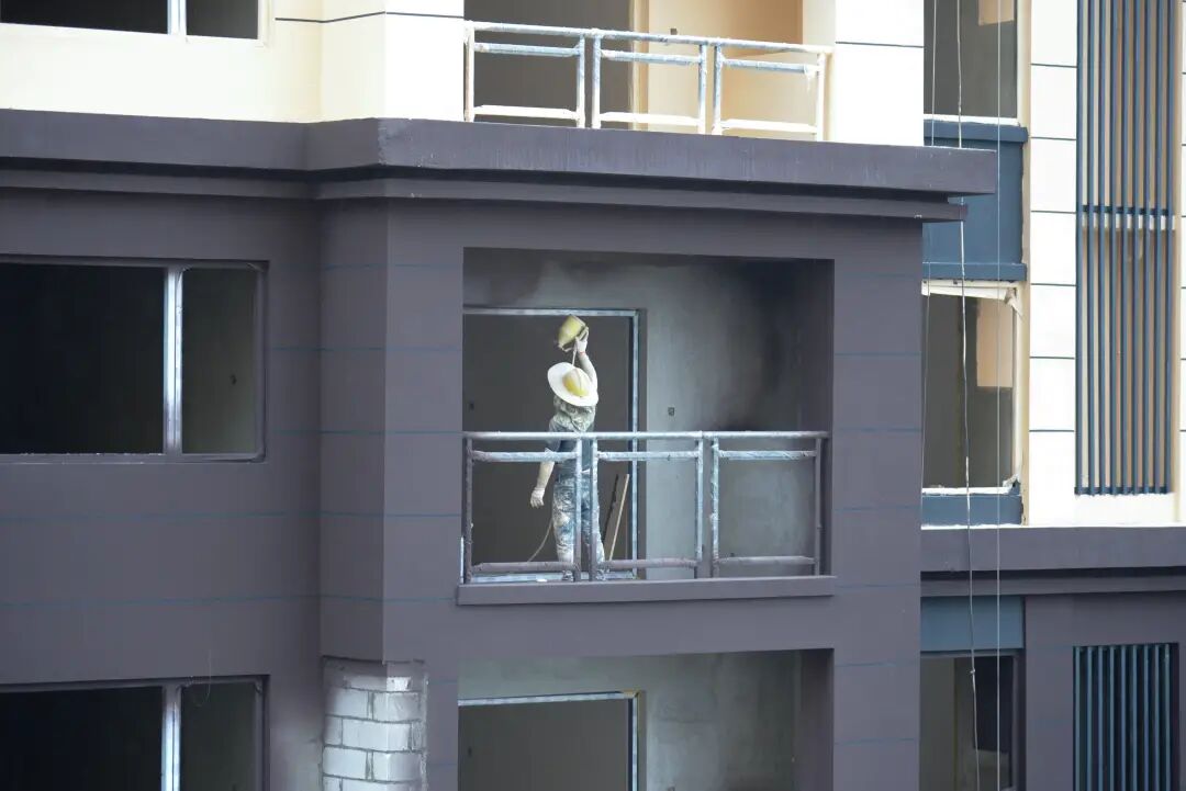 或在各楼栋进行贴砖和抹灰施工