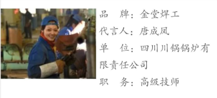 唐成凤,女,汉族,文化程度:本科,35岁,中共党员,焊工高级技师,2007年川锅技校毕业后,进入四川川锅锅炉有限责任公司从事焊接工作至今。她刻苦钻研焊接理论知识,向师傅们学习各种实战技术,掌握较全面的焊接技能,积累了丰富的焊接实践经验。她时刻以“态度决定一切,细节决定成败”作为自己的座右铭,在工作中恪尽职守,任劳任怨,创新创造,始终以精益求精的精神作为自己的工作准则。她多次在生产过程中作出突出贡献,受到领导的嘉奖和同事们的好评,在技能比赛中多次获奖,荣获“全国劳动模范”“全国五一劳动奖章”“全国优秀农民工”“全国五一巾帼标兵”“成都市技能标兵”“成都工匠”等荣誉称号。