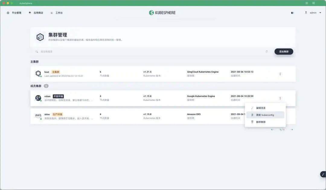 除了以上这些改进之外,还优化了多集群的管理体验,比如可以直接在 Console 界面更新每个集群的 kubeconfig 内容。