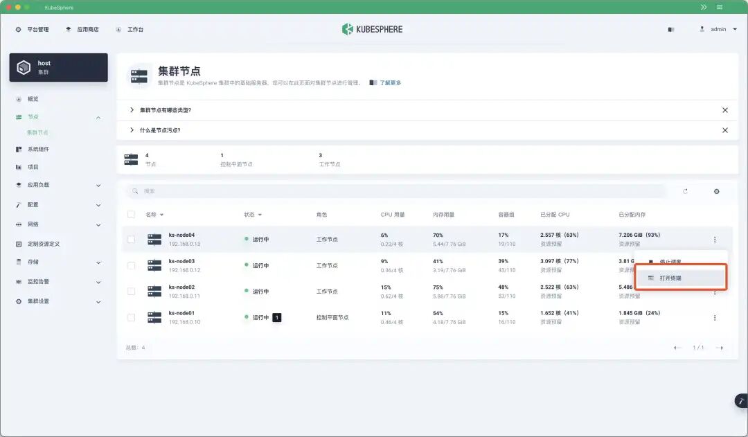 当然,Console 界面不仅可以登录边缘节点,也可以登录普通的节点。
