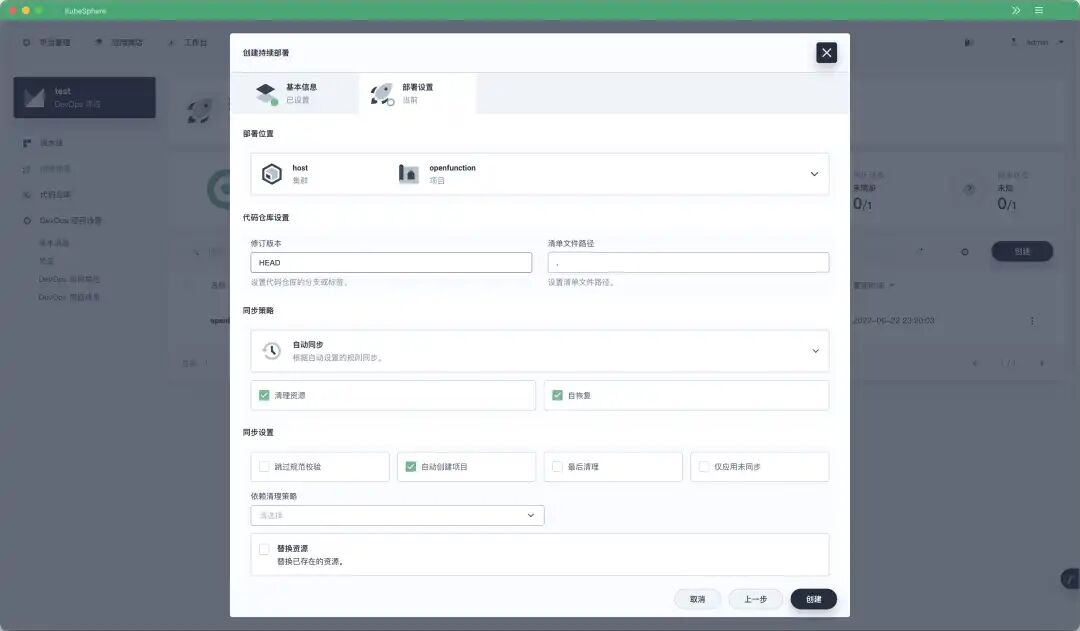 以云原生 FaaS 项目 👉OpenFunction 为例,假设您的 KubeSphere 集群中已经部署了 nginx-ingress 和 knative-serving,可以通过 GitOps 持续部署 OpenFunction 的其他组件。