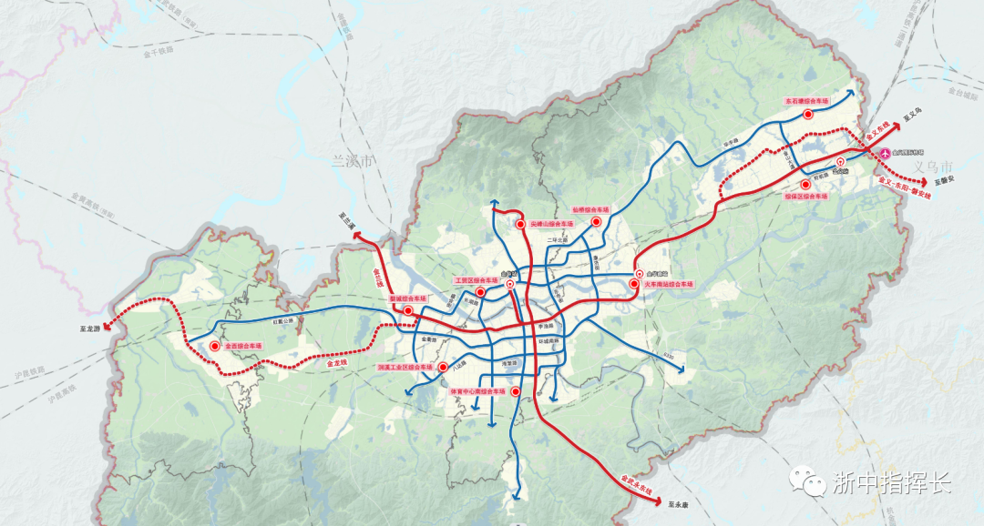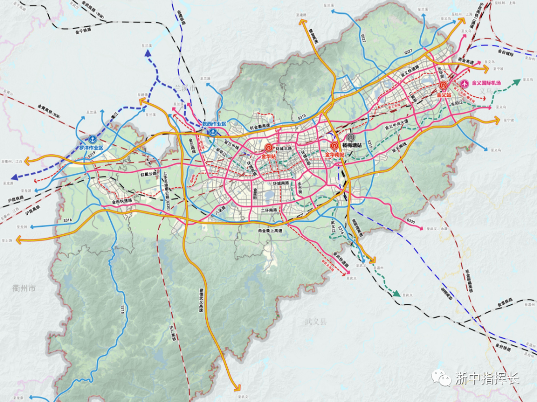 规划市域轨道金义线、金兰线和金武永东线,预留金义至东阳至磐安线、金华至龙游线。