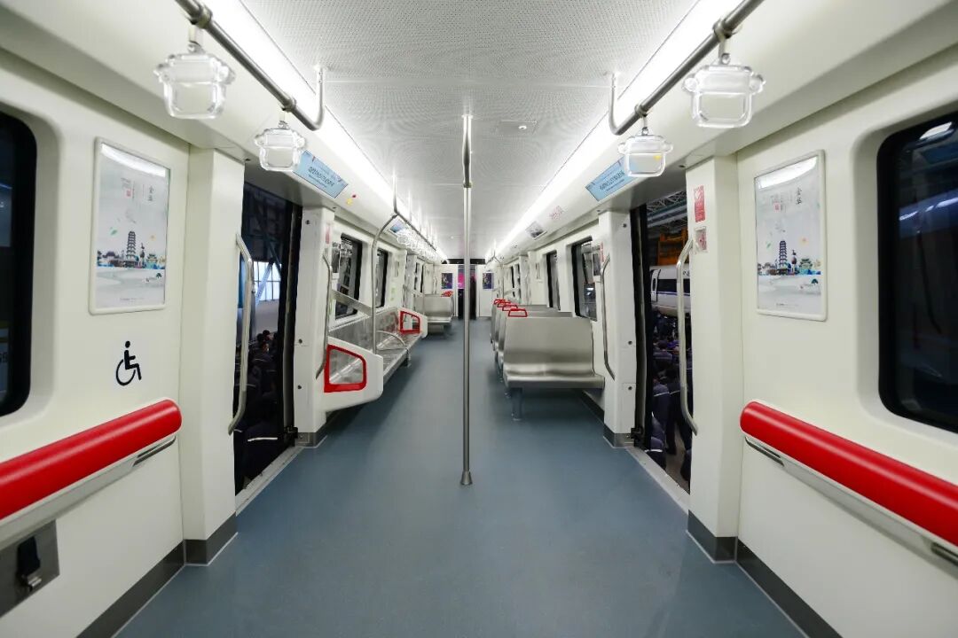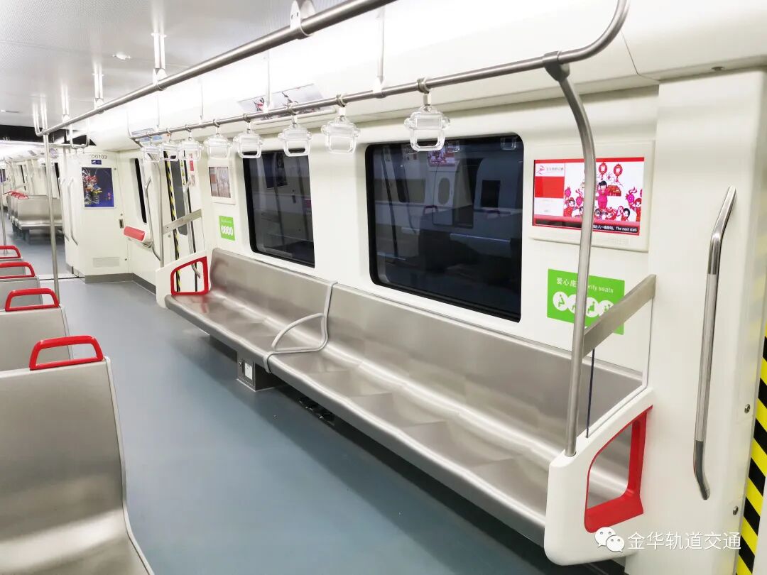 通常国内地铁车厢座席为背靠窗,面对面纵向布置,这样可以腾出更多的空间用于站立。为增强乘客舒适度,金义东市域轨道交通项目电动客车增加了横向座椅。