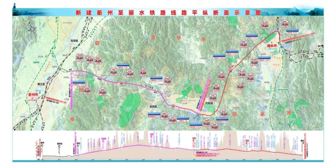 衢丽铁路一期起自衢宁铁路松阳站,途经丽水市松阳县、莲都区,终于金温铁路丽水站,全线长65.3公里,客货共线,设计时速200公里,共设3个车站,其中新建东西岩站,总投资90.9亿元,工期4年。项目建成后将进一步完善浙西南铁路网规划布局、夯实浙江省“大花园”运输通道建设支撑、带动区域经济社会发展。