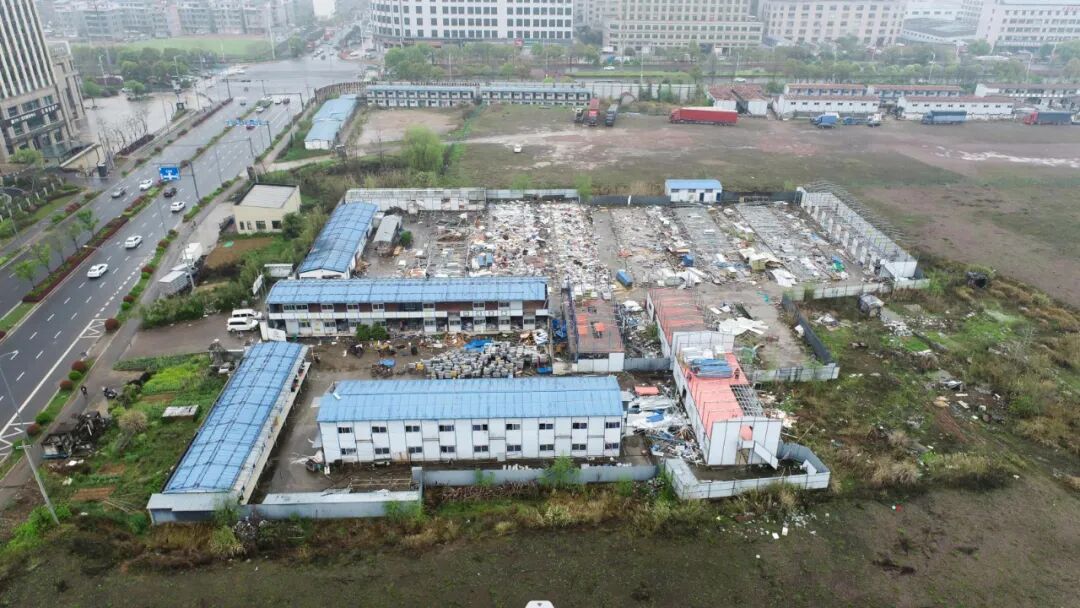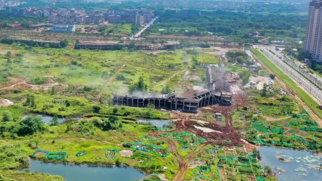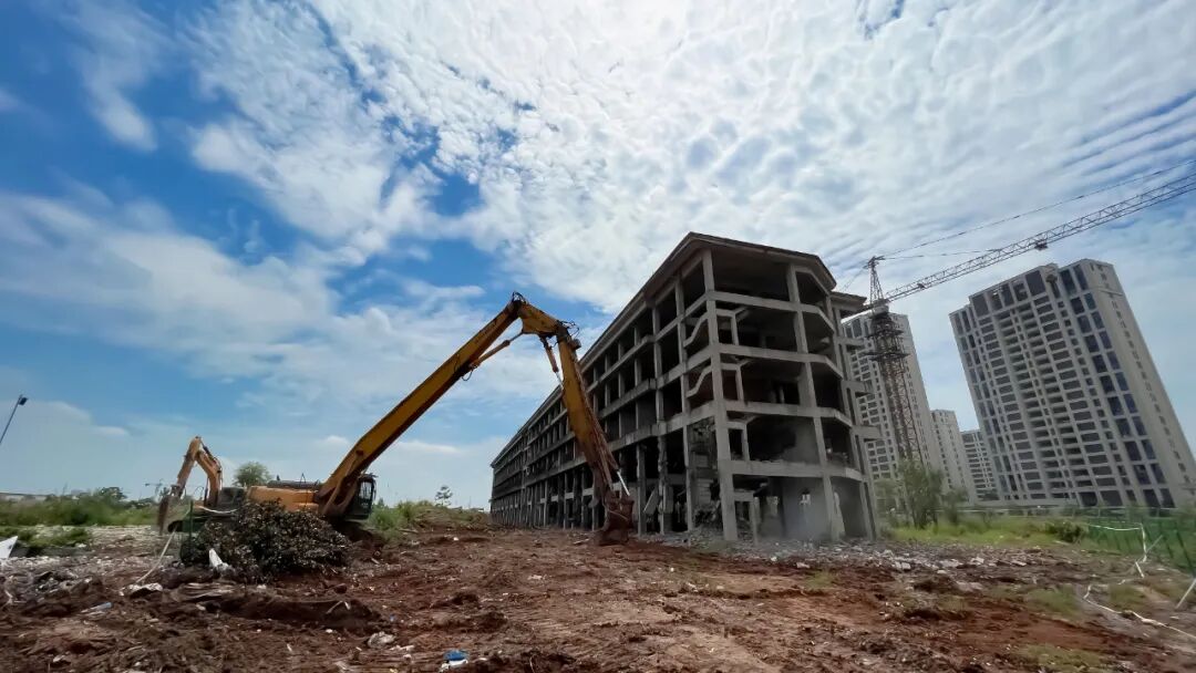 8月27日上午,金义新区“地心世界”地块,工人们正在开展建筑物残值处置。两天前,随着建筑物一处接一处轰然倒地,“地心世界”项目宣告全部拆除完毕,结束了长达8年的“烂尾”姿态,一举腾出可开发利用土地750亩。