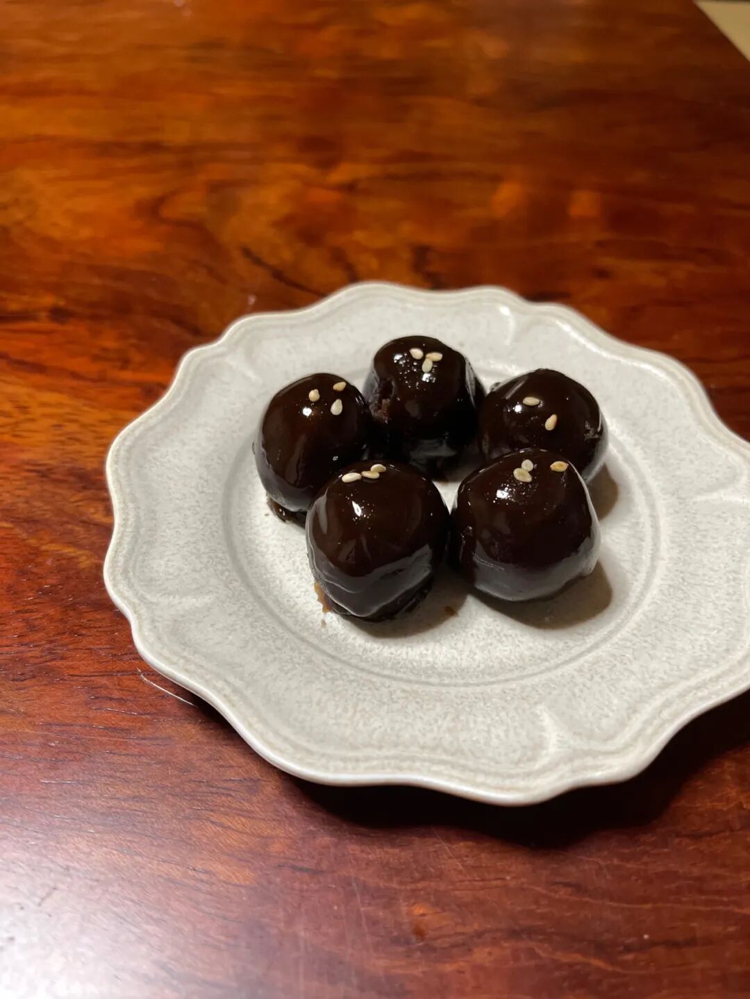 店内的招牌商品就是“乌羽玉”,这种和菓子曾出现在《古今和歌集》和《万叶集·枕词》中。乌黑的羊羹里包裹上黑豆沙,最上面点缀几颗白色的芝麻粒。一颗颗“乌羽玉”摆在盒里或盘中,仿佛暗光黑宝石,散发着奇妙的魔力。放入口中,黑砂糖的甘甜混合着芝麻的喷香,让人回味无穷。![]()