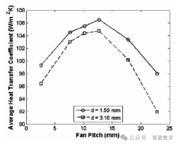 强调了这种性能是用平均传热系数来描述的。据推测,最大局部传热系数会随着振动振幅或间距的减小而增大。然而,较小的风扇间距也会减少覆盖面积,或组合振动包膜。