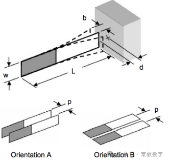 图4.传热实验的各种几何参数说明:两种不同多风扇方向的风扇长度(L)、宽度(W)、振动幅度(B)、风扇到加热器分离距离(D)、风扇节距(P)