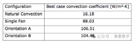 两方向传热系数的实验结果总结在表1中,其中将多扇实验实验中的最佳情况与单扇实验的性能以及自然对流实验的结果进行了比较。