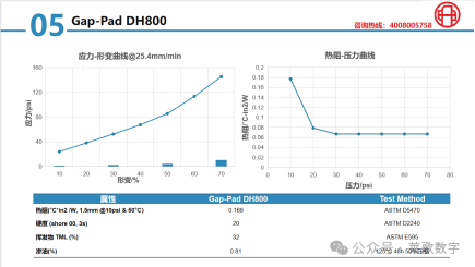与电子组件装配使用时,低压缩力下表现出较低的热阻和较好的电气绝缘特性,击穿电压(>3kv/mm)。在-40℃~200℃可以稳定工作,满足UL94V0的阻燃等级要求。