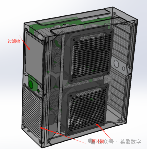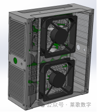 外壳采用SECC钣金件加工,该设备在室内使用,使用环境没有之前的3KW 车载充电机那么恶劣,防护等级IP33,进出风口有过滤棉,结合百叶窗的结构设计进行防护,如下图所示。