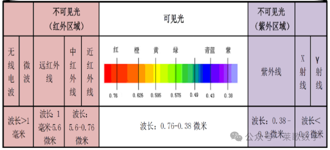 电子产品热设计中常用到的温度范围约为-40℃~150℃,对应的辐射波长约为:波长=0.002897/(233K~423K)=12um~7um,正好是红外线波段,如下图所示,