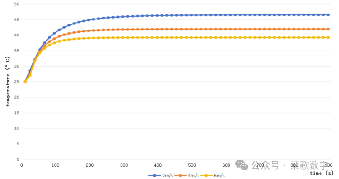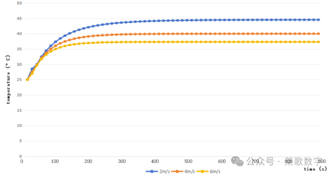 图5.铝散热器的温度监测曲线(V = 2m/s)