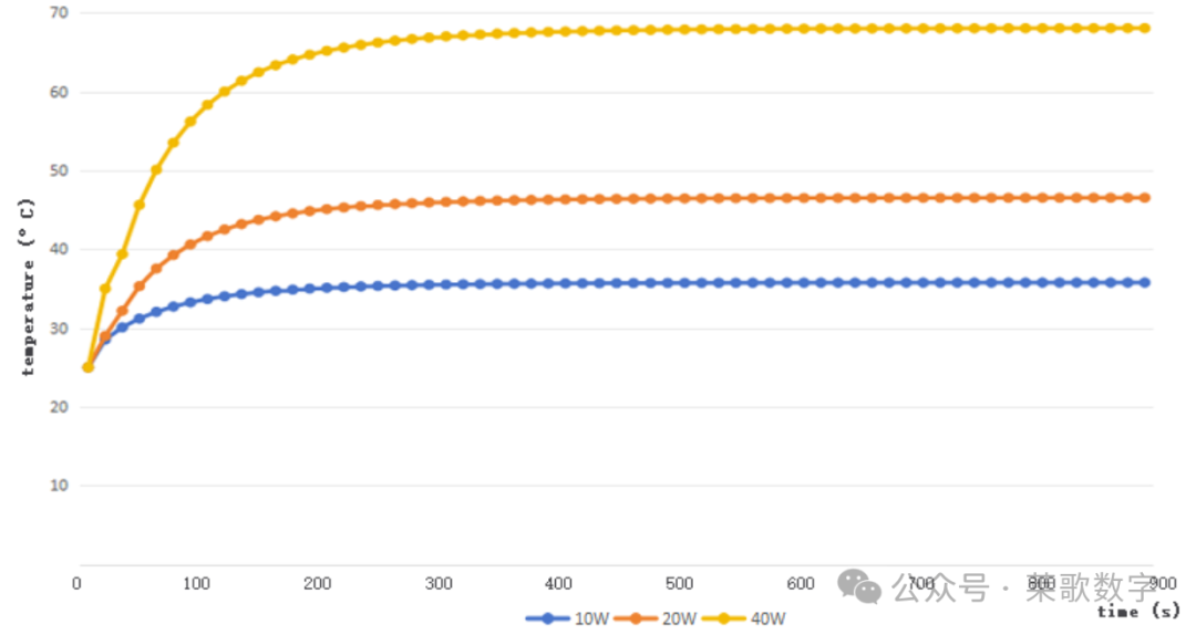 此案例中,我们取前900s的时间温度监测曲线,来对比同流速情况下,不同热源的瞬态响应情况。