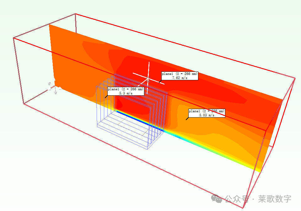 图2.铝制散热器的速度分布(Q = 40 W,V = 6 m/s.)