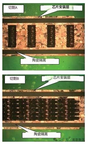 图7a是一个具有直接集成的DBC衬底的冷却器部分。许多铜层被放置在两个DBC衬底之间,彼此链接衬底。