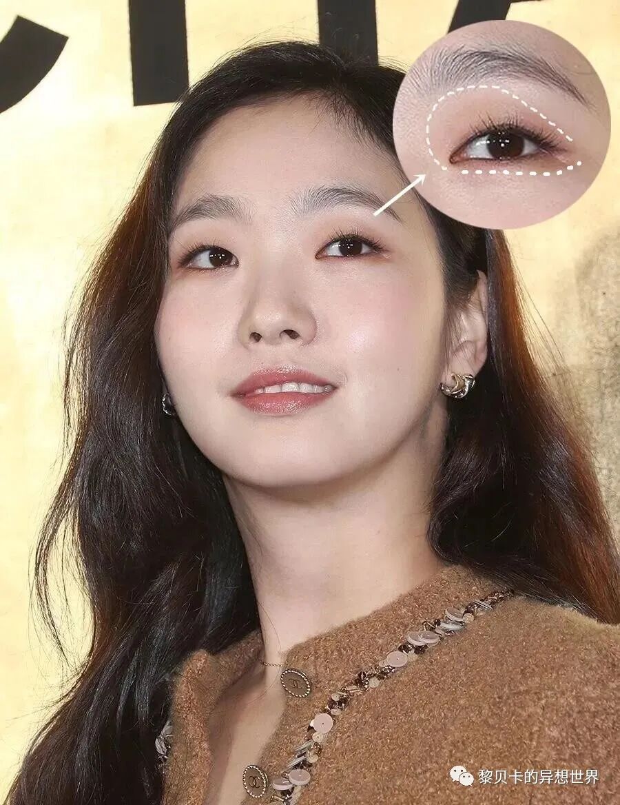 发现了吗?她只在眼尾画眼线,而且并没有贴着睫毛根画,而是微微向上挪了1、2mm再上扬。▼