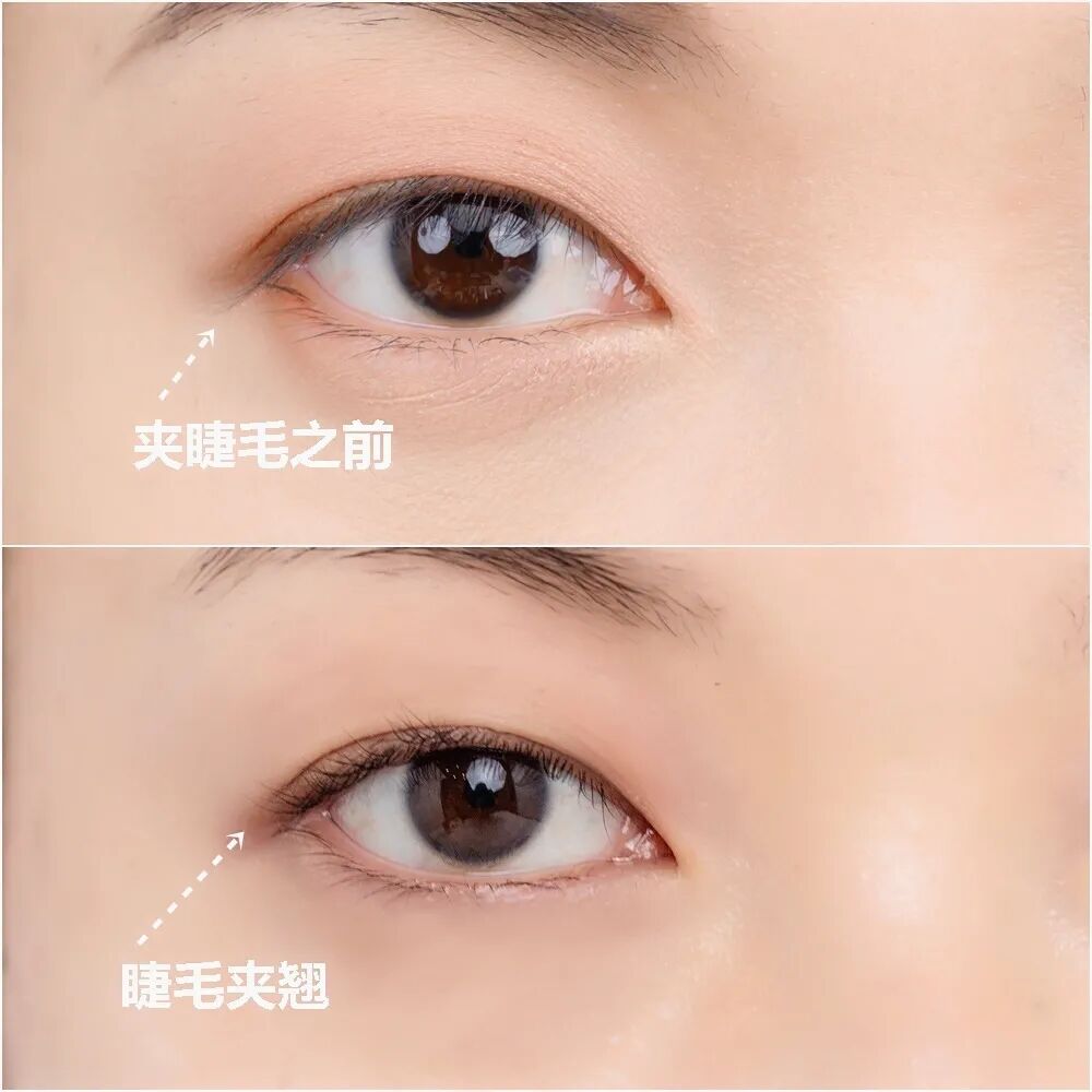 单眼皮、内双、肿眼泡的上眼皮普遍会压住睫毛根。因此在画眼线前要先夹睫毛,用卷翘的睫毛把眼皮撑起来,后续画眼线会更轻松。有请叽吖给大家做示范▼