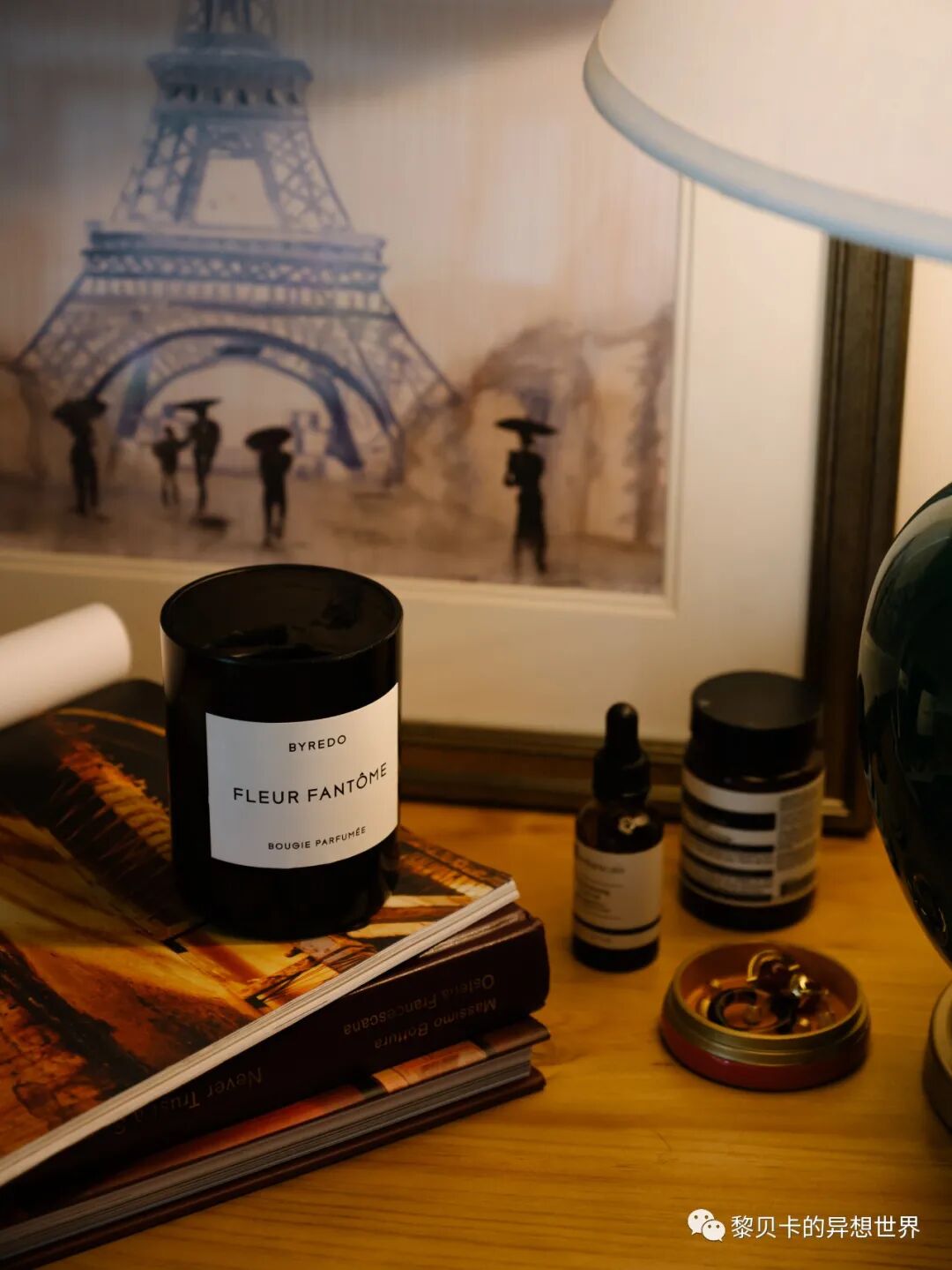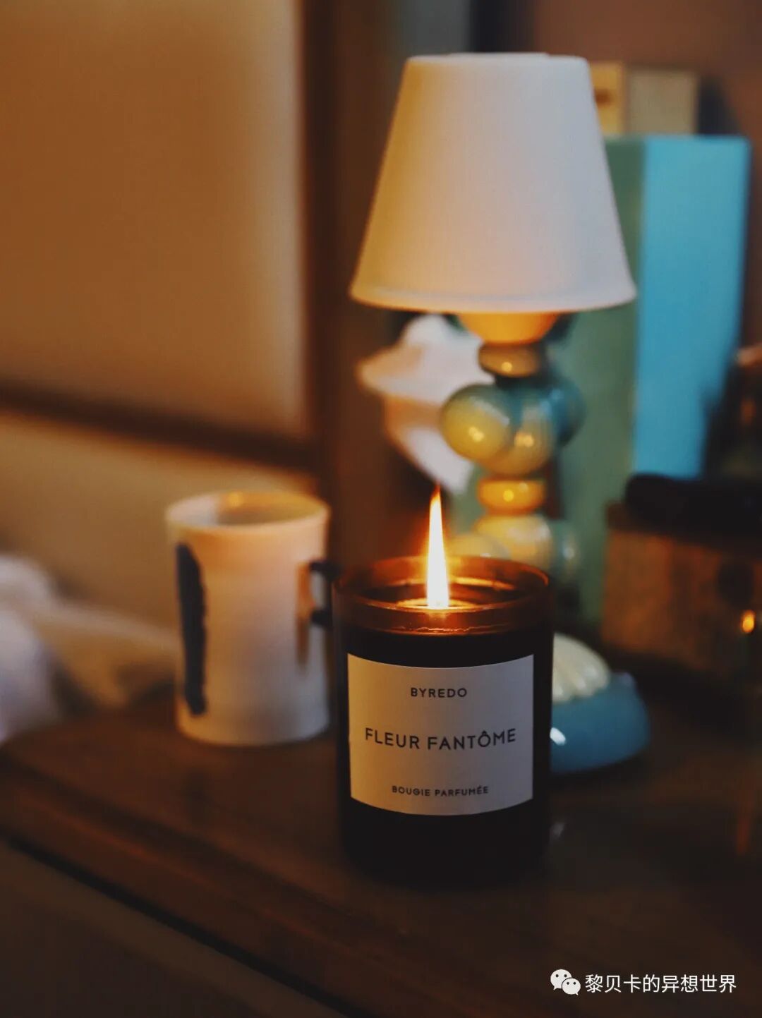 它用的是白瓷,在瓷花瓶里算是相对薄和轻一点的,加上这个形状,我总觉得它比较“脆弱”,每次拿的时候都害怕磕到它(捂脸)。这个工作室还有很多折纸风格的瓷器也都蛮好看,他家在上海有陶艺工作室,之后有机会想去逛逛~买它的那个买手店我们也写过,叫“节选”,很多小东西都还蛮值得买的,但就是价格不便宜。Byredo Fleur Fantôme 香薰蜡烛Byredo的东西总体我都蛮喜欢的,香水(你们一定经常在推送里看见那支Gypsy Water哈哈)、护手霜和香薰蜡烛我之前都分享过,基本不踩雷。这只Fleur Fantôme我买了有一段时间了,一直没拿出来用。有天心血来潮把它拆开了,还没点上,香味就已经在房间里散开了,点上以后更是满屋都是花香,还是我家那种大客厅,就觉得特别神奇。它应该比我所有的蜡烛扩香都要好!▼它是花香,但又不是那种很脂粉气的花香,非常清甜,有沁人心脾的感觉,和他家向来性冷淡的外表还蛮有反差萌的哈哈~▼后来有段时间我把它放在玄关,每天一进门花香扑面而来,一下子就觉得回到了温暖的家的怀抱,太治愈了!