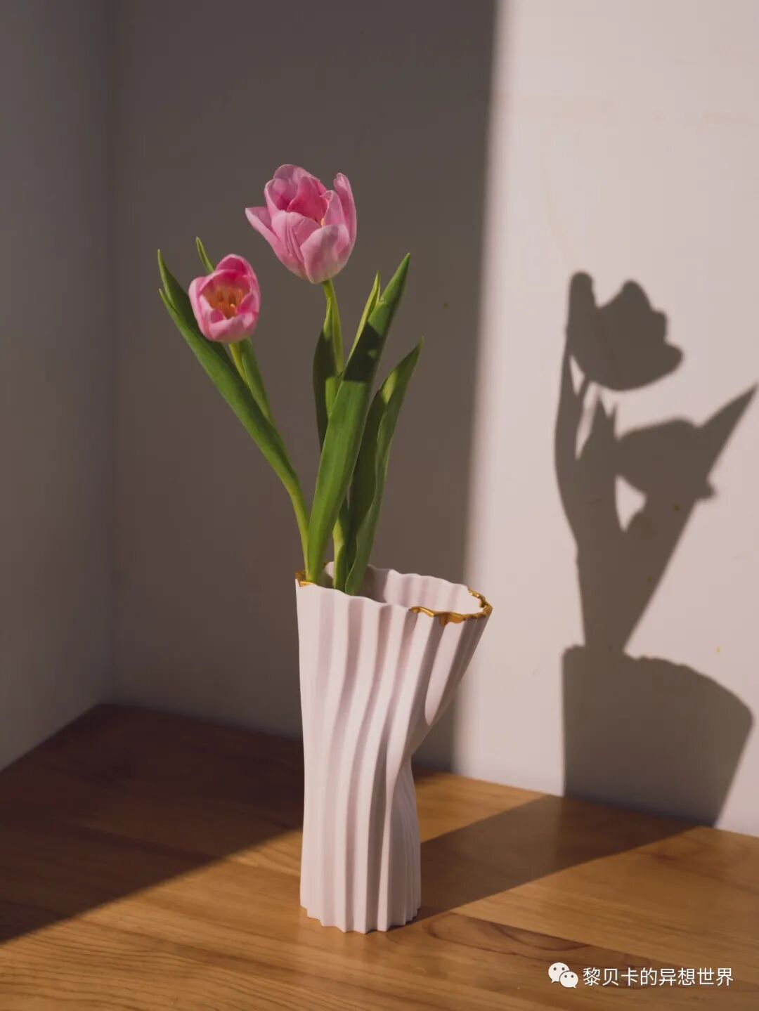 这个花瓶上次写上海家居店的时候就有提到过,微博plog也发过。我当时在店里看到就觉得颜色和造型都巨美,它就那么摆在那里,随便插两朵花就特,别,仙!乖乖为颜值买单。拿回家之后更喜欢,我一度觉得它无论插什么花都好看,尤其是搭配郁金香,自带氛围感,这段时间一直占据着我家“花瓶宠幸榜”榜首哈哈~▼不过,用了一段时间发现,它倒也不是完全不挑花,一些很小只的花它插起来就没那么大方,插一些中型的花(比如郁金香或者洋牡丹)更好,而且数量也不能太多,一两支就行,和它的几何线条感更衬。▼它是一个瓷器工作室的作品,叫Atelier Errance,这种很强的线条和几何感也是他们的瓷器的一个特色。我买的这个花瓶叫“Plipli mutation折纸异变系列”,每个花瓶的形状都会在烧制过程中自然扭曲的,所以每一个都很特别,没法复制。这个系列只限量100个,我这个是第23个。▼他家的白色瓷器居多,我买的是比较特别的淡粉色,有助理小妞说像是少女粉嫩的皮肤