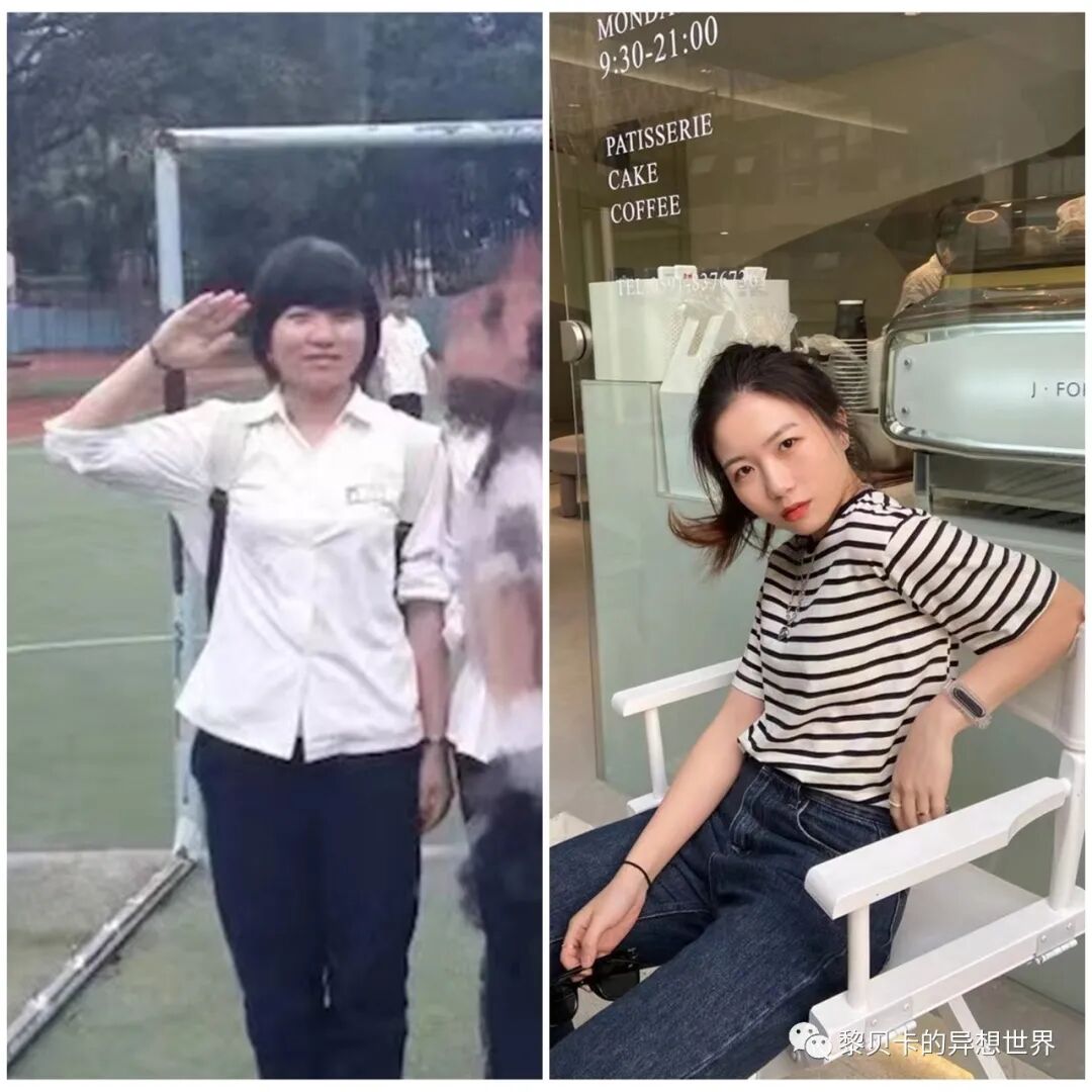 我一直觉得中学的自己很难看,那时候内心非常自卑。曾经还因为发育快被嘲笑,一度觉得全世界我最丑。大概从2017年夏天开始,体重从118降到90上下,最轻84斤。学会了修眉,化妆和护肤,脸也不再土黄,尝试了各种发型,在穿衣打扮上花了功夫。花很长的时间去读书,去看电影。